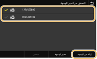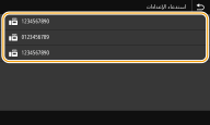 يمكنك استدعاء الوجهات المحددة في السابق. عندما تحدّد وجهة مستخدمة من قبل، يقوم الجهاز أيضًا بضبط نفس إعدادات الفاكس مثل الكثافة التي استخدمتها عندما أرسلت مستندات لتلك الوجهة في المرة الماضية.