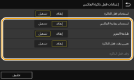 حدد ما إذا كان سيتم تنشيط وظيفة استلام الذاكرة فقط أثناء إطار زمني محدد من اليوم. حدد <تشغيل> لتنشيط وظيفة استلام الذاكرة فقط أثناء إطار زمني محدد في <وقف قفل الذاكرة>.