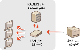 IEEE 802.1X هو مقياس وآلية لصد الدخول غير المصرّح به للشبكة عن طريق إدارة معلومات اعتماد المستخدم بشكل جماعي. إذا حاول الجهاز الاتصال بالشبكة 802.1X، يجب على الجهاز أن يمر خلال عملية اعتماد المستخدم لإثبات أن التوصيل تم بواسطة مستخدم معتمد. يتم إرسال معلومات المصادقة والتحقق منها من قبل خادم RADIUS الذي يسمح أو يرفض الاتصال بالشبكة اعتمادًا على نتيجة المصادقة. إذا أخفقت المصادقة، يقوم مفتاح LAN (أو نقطة وصول) بصد الدخول من الخارج إلى الشبكة. يمكن توصيل الجهاز بشبكة 802.1X كجهاز عميل. ضبط إعدادات مصادقة IEEE 802.1‏x‏