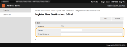 يمكنك تسجيل الوجهات في دفتر عناوين الجهاز باستخدام جهاز الكمبيوتر وتحرير معلومات الوجهات المسجلة. حدد المجلد المشترك أو وجهة خادم FTP هنا.