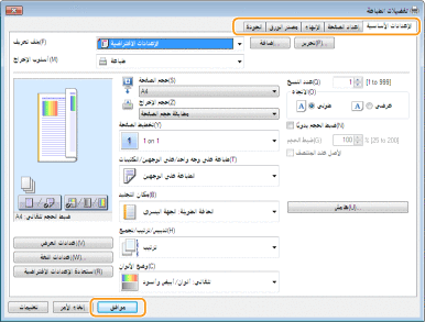 حدد إعدادات الطباعة حسب الضرورة، ثم انقر على [موافق].