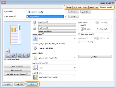 حدد إعدادات الطباعة حسب الضرورة، ثم انقر على [موافق].