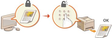 عن طريق إعداد رمز PIN لمستند ما عند الطباعة من كمبيوتر، يتم إبقاء المستند في ذاكرة الجهاز، ولا تتم طباعته إلا بعد إدخال رمز PIN الصحيح على لوحة تشغيل الجهاز. هذه الوظيفة تسمّى "الطباعة الآمنة"، والمستند المحمي برمز PIN يسمّى "مستندًا محميًا". استخدام الطباعة الآمنة يحفظ مطبوعات المستندات السرّية من البقاء دون رقابة.
