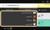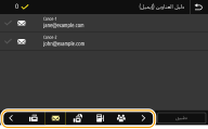 في حالة تحديد وجهة من <دليل العناوين> في الشاشة الرئيسية، يمكن عرض شاشة الميزات الأساسية لإرسال البريد الإلكتروني أو حفظ الملفات فيما تظل الوجهة المختارة قيد التحديد.