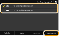 يمكنك اختيار وجهة من بين الوجهات السابقة. عندما تحدّد وجهة مستخدمة من قبل، يقوم الجهاز أيضًا بضبط نفس إعدادات المسح الضوئي مثل الكثافة التي استخدمتها آخر مرة تم فيها إرسال مستندات إلى تلك الوجهة.