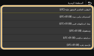 اضبط <المنطقة الزمنية> قبل ضبط التاريخ والوقت الحاليين. إذا تم تغيير الإعداد<المنطقة الزمنية> في وقت لاحق، يتم تغيير التاريخ والوقت الحاليين أيضًا وفقًا لذلك.