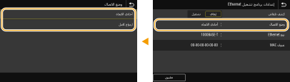 تعد Ethernet أحد الحلول القياسية لتوصيل البيانات في شبكة الاتصال المحلية (LAN). ويمكنك تعيين وضع الاتصال ونوع شبكة Ethernet. وبوجه عام، يمكن استخدام الجهاز بدون تغيير الإعدادات الافتراضية (<إعدادات برنامج تشغيل Ethernet>)، ولكن يمكنك تغيير هذه الإعدادات لتتناسب مع بيئة الشبكة الخاصة بك.