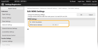 Windows Internet Name Server (WINS) عبارة عن خدمة لتحليل الأسماء تربط بين اسم NetBIOS (اسم كمبيوتر أو طابعة في شبكة SMB) وعنوان IP. لتمكين (تفعيل) WINS، يجب تحديد خادم WINS.