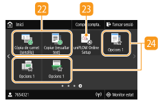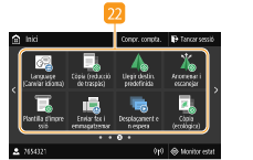 Mostra les "Opcions preferides" desades per a la còpia, l'enviament de fax i la lectura. Addició de botons a la pantalla Inici