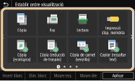 Podeu afegir botons de drecera a la pantalla Inici per a les funcions que feu servir amb més freqüència, com ara <Còpia>, <Fax> i <Lectura>. Per exemple, podeu dur a terme tasques d'una manera més ràpida i eficient si assigneu una seqüència d'opcions (com ara, "Llegir les dues cares d'un original, desar-lo com a fitxer PDF molt comprimit i enviar-lo per correu electrònic") a un sol botó.