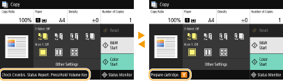 Повідомлення відображаються на екрані, якщо бракує паперу або завершується термін служби тонера в картриджі. Для отримання додаткової інформації див. розділ «Усунення несправностей (FAQ)» на веб-сайті електронного посібника.