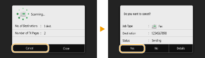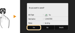 Щоб скасувати надсилання факсів відразу після того, як вибрано елемент <Start>, на екрані виберіть команду <Cancel> або натисніть клавішу на панелі керування. Після перевірки стану факсимільного зв’язку можна також скасувати надсилання факсу.