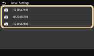 ![]() | Ви можете викликати адресатів, указаних раніше. Якщо вказати попереднього адресата, апарат встановить ті самі параметри факсимільного зв’язку (зокрема, насиченість екрана), що використовувалися минулого разу для надсилання документів цьому адресату. |