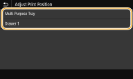 Якщо документ надруковано не по центру або за межами діапазону друку, настройте позицію друку. Позицію друку можна окремо вказати для кожного джерела паперу. Позицію друку можна вказати в діапазоні від -5,0 мм до +5,0 мм з кроком 0,1 мм.