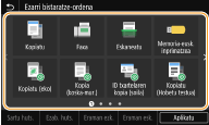 Etxea pantailari lasterbide-botoiak gehitzeko aukera duzu <Kopiatu>, <Faxa> eta <Eskaneatu> bezalako sarritan erabilitako funtzioentzat. Adibidez, lanak bizkorrago eta eraginkortasun handiagoz burutzeko aukera duzu botoi bakar bati ezarpen-sekuentzia bat esleituz (adibidez: "Original baten bi aldeak eskaneatu, oso konprimatutako PDF fitxategi gisa gorde eta posta elektronikoaren bidez bidali").