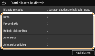 <Funtzio-ezarpenak> <Bidali> <Fax-ezarpenak>. Hala ere, <Helbide-lib.> egindako ezarpenak helbide liburuan erregistratutako helburuen ezarpen xeheentzako gaitzen dira. |
