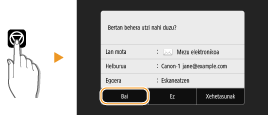 Dokumentuen bidalketa <Hasi>, sakatu bezain pronto ezeztatu nahi baduzu, hautatu <Utzi> pantailan edo sakatu . Dokumentuen bidalketaren egoera begiratu ondoren ere ezeztatzeko aukera duzu.