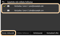 Aurretik erabilitako azken hartzaileen arteko hartzaile bat hauta dezakezu. Aurretik erabilitako hartzaile bat adierazterakoan, makinak eskaneatze ezarpen berak eta hartzaile horretara dokumentuak azken aldian bidaltzerakoan erabilitako dentsitatea ere bai ezarriko ditu.