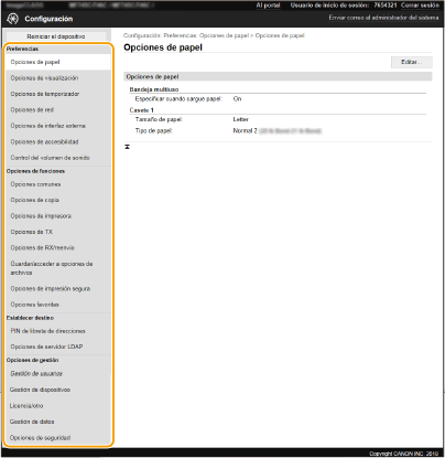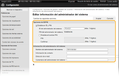 Algunas de las opciones solo pueden cambiarse si ha iniciado sesión en el Modo de administrador del sistema. Algunas opciones podrían requerir unas operaciones distintas a las descritas en este procedimiento. |