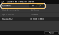 Si está activada la detección automática, el equipo detectará y establecerá automáticamente el modo de comunicación y el tipo de Ethernet que pueden utilizarse.