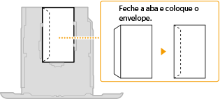 Carregue os envelopes monarca, COM10, DL, ou ISO-C5 na orientação retrato (com as bordas curtas voltadas para a máquina), com o lado sem cola (lado frontal) voltado para cima. Você não pode imprimir no lado inverso dos envelopes.