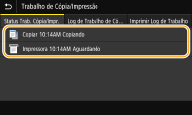 Quando <Exibir Log do Trabalho> está definido como <Desativado>, você não pode verificar os registros de impressão. <Exibir Log do Trabalho> |