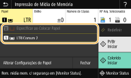 ![]() Quando o cassette feeding module opcional está instalado, sua gaveta de papel também é exibida. Ao especificar outras configurações de impressão, selecione <Fechar>. |