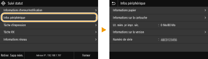 Vous pouvez modifier un grand nombre de réglages relatifs à l'affichage tels que la langue d'affichage. Pour en savoir plus à ce sujet : <Réglages d'affichage>