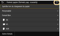Sur certains écrans, le bouton <?> permet d'afficher les descriptions des fonctions ou des instructions pour faire fonctionner l'appareil. |