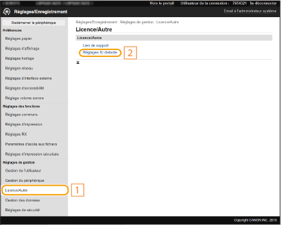 Cliquez sur [Réglages/Enregistrement] sur la page du portail.