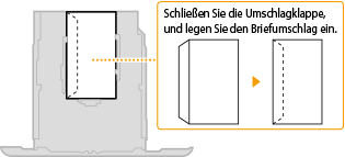 Legen Sie die Briefumschläge so ein, dass die Kante mit der Umschlagklappe wie in der Abbildung gezeigt nach links weist. |