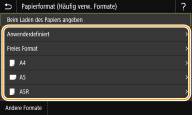 Wenn das Format des eingelegten Papiers nicht angezeigt wird, wählen Sie <Andere Formate>.