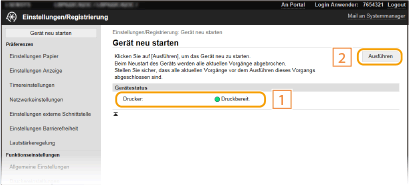 Je nach den Einstellungselementen, die geändert wurden, müssen Sie die die Änderungen aktivieren, indem Sie das Gerät neu starten. Dieser Abschnitt beschreibt, wie Sie das Gerät neu starten.