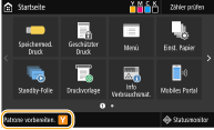 Wenn eine Meldung angezeigt wird Wenn Sie gerade drucken, können Sie mit dem Drucken des Originals fortfahren. Wenn eine Meldung für die schwarze Tonerpatrone angezeigt wird, während das Gerät ein I-Fax empfängt, druckt das Gerät nicht, so dass ein undeutlicher Druck vermieden wird. Um den Druckvorgang auch dann fortzusetzen, wenn der in der Tonerpatrone verbliebene Toner zur Neige geht, setzen Sie <Drucken fortsetzen. W. T. n.> auf <Ein>. <Drucken fortsetzen. W. T. n.>Geben Sie an, wenn eine Meldung angezeigt wird Sie können einen beliebigen Wert als Prozentsatz für die in der Tonerpatrone verbliebene Tonermenge festlegen, der diese Meldung auslöst. <Zeit. f. Patronenvorb. anz.> |