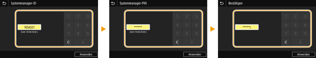 2 | Geben Sie den Namen des Systemmanagers ein, und wählen Sie <Anwenden>. Näheres zur Eingabe von Text finden Sie unter Eingeben von Text. |