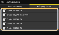 Wenn <Auftragslog anzeigen> auf <Aus> gesetzt ist, können Sie die Drucklogs nicht prüfen. <Auftragslog anzeigen> |