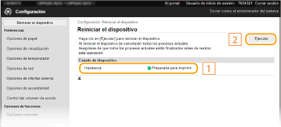 Compruebe el [Estado de dispositivo] para asegurarse de que no se está procesando ninguna función y haga clic en [Ejecutar].