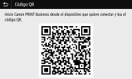 Seleccione <Conexión LAN> y siga con el procedimiento si la pantalla <Conexión directa> aparece después de seleccionar <Portal móvil> en el procedimiento de abajo. Para obtener información sobre los sistemas operativos compatibles con Canon PRINT Business, el procedimiento de configuración detallado y el procedimiento operativo, consulte la ayuda de la aplicación o el sitio web de Canon (https://global.canon/gomp/).