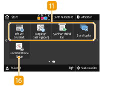 ![]() | <Instellingen startscherm>Hiermee kunt u de knoppen op het scherm Start in een andere volgorde weergeven. Het scherm Start aanpassen <Update firmware>Hiermee kunt u de firmware actualiseren via het internet. De Firmware updaten <uniFLOW Online Setup>U kunt de gebruiksstatus van het apparaat en de gebruiker controleren door te verbinden met de cloudservice. Zie voor meer informatie de Canon website. |