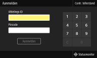 Als Afdelings-ID-beheer is ingeschakeld of als Systeembeheerders-ID's zijn geactiveerd, kunt u het apparaat pas gebruiken wanneer u hebt ingelogd. Wanneer het aanmeldingsscherm wordt weergegeven, volg dan onderstaande procedure en voer de Afdelings-ID en pincode in.