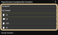 Als het formaat van het geplaatste papier niet zichtbaar is, selecteert u <Overige formaten>.