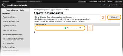 Als er bepaalde instellingen zijn aangepast, moet u de veranderingen misschien effectief maken door het apparaat opnieuw te starten. Dit gedeelte beschrijft hoe u het apparaat opnieuw start.