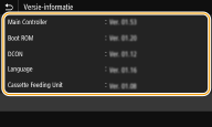 De firmwareversie controlerenU kunt de firmwareversie controleren vanaf het bedieningspaneel van het apparaat. Na het actualiseren van de firmware moet u controleren of het actualiseren correct was uitgevoerd. De firmwareversie controleren |