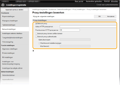 Schakel het selectievakje [Gebruik proxy] in en geef de benodigde instellingen op.
