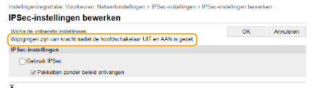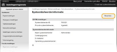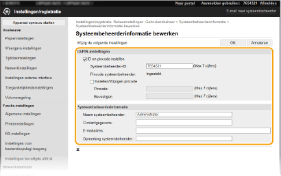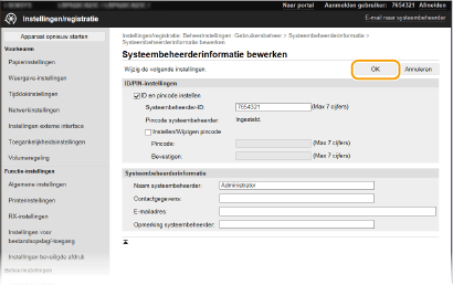 Sommige instellingen kunnen uitsluitend worden gewijzigd als u zich aanmeldt in de Systeembeheerder-modus. Sommige instellingen kunnen bewerkingen vereisen die verschillen van de hier beschreven procedure. |
