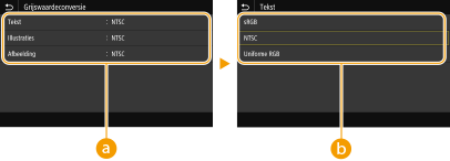 <Tekst> <sRGB> <NTSC>  <Uniforme RGB> <Illustraties> <sRGB> <NTSC>  <Uniforme RGB> <Afbeelding> <sRGB> <NTSC>  <Uniforme RGB> |