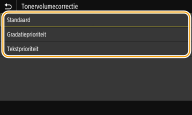 Stelt de hoeveelheid tonertoevoer zodanig in dat de juiste resolutie is gegarandeerd voor tekst en lijnen, en dat de juiste kleurtint is gegarandeerd voor andere types printgegevens.