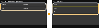 Selecteer een paginabeschrijvingstaal (PDL), zodat de machine wordt gedetecteerd als een printer die compatibel is met die taal wanneer de machine wordt gedetecteerd via het netwerk.