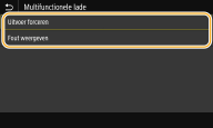 <Multifunctionele lade> <Uitvoer forceren>  <Fout weergeven> <Lade 1> <Uitvoer forceren>  <Fout weergeven> <Lade 2>*1 <Uitvoer forceren>  <Fout weergeven> |