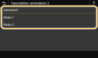 Het verbeterende effect is sterker met <Modus 2> dan met <Modus 1>. Probeer eerst de instelling met <Modus 1>. Een sterker verbeterend effect instellen kan leiden tot gekrulde afdrukken of lagere afdruksnelheid. |